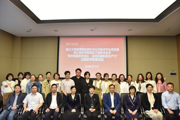 4月29日,中国科学院院士、浙江大学医学院院长黄荷凤一行来校与音乐工程系党总支开展以“联学联建优势互补,促进发展新质生产力”为主题的党建联学共建活动。浙江大学医学院党委常务副书记、副院长夏标泉,副院长、科研办与公共技术平台党支部书记张丹,党委委员、教育办主任刘有恃,浙江大学医学院科研办与公共技术平台党支部党员干部代表,学校党委副书记蔡亦军、发展规划处、科研处、社会合作中心、数字音乐智能技术处理文化和旅游部重点实验室负责人、音乐工程系党总支党员师生代表参加活动。