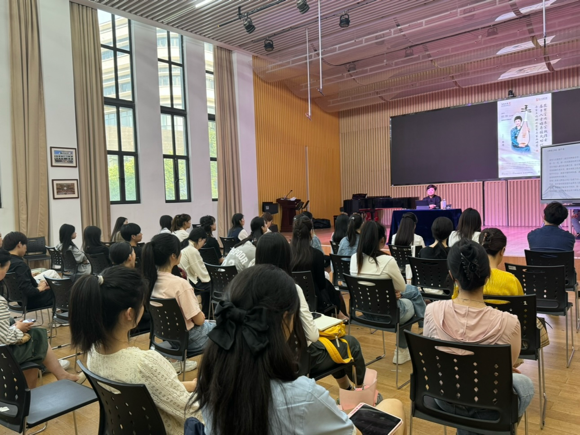 在《齐物见心——中国画写意之美》专题讲座中,中国美术学院刘海勇教授以中国画为媒介,探讨了音乐与绘画之间的艺术共通性,并在悠扬的国乐演奏中现场即兴作画,引得热烈掌声。讲座主持人温和教授也结合自己的研究,为音乐学子们提供了全新的艺术思考角度。这种跨界融合的教学方式,为学生们提供了更广阔的艺术视野,让他们能够从多个角度理解和表达音乐。