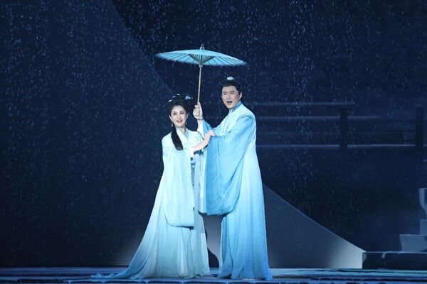 傍晚时分,伴随着青年指挥家崔媛媛的节奏,优美的旋律将人们的视线拉回到千年宋朝——只见李清照深情地抚着古琴,剧中人赵明诚、李格非、青梅、海棠、项羽、卖花郎众人相继慢慢向她靠近……李清照于梦中会见故人的场景呈现在眼前。